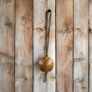 Attach rope to the ball's leader rope. Hang the ball above eye level with your horse. Alternatively, hang on a tree, fence or rail, but hang the ball so that your horse cannot pin it or lean it against the wall or any solid objects.