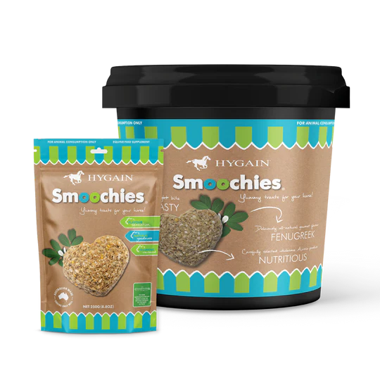 Fussy eaters, old-timers and sporting athletes from all over the country helped us to refine Smoochies® to make your horse’s taste-buds party. The result is a crunchy baked heart-shaped horse treat biscuit, made from the freshest wholesome Aussie produce with the full flavour sensation of Fenugreek, ideal as a reward or just simply as a gesture of love.